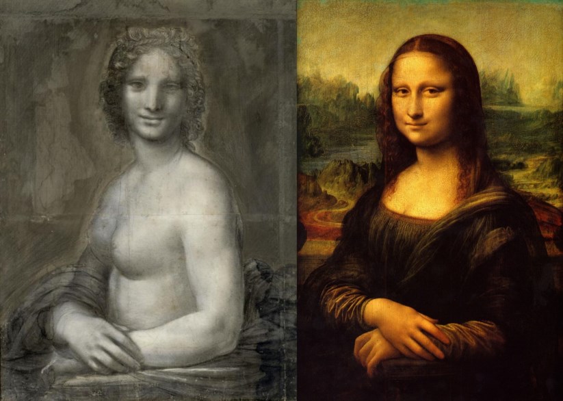 Em 1992, a artista gráfica Lillian Schwartz colocou lado a lado o auto-retrato de Leonardo e a Mona Lisa. O alinhamento perfeito sugere que a mulher na tela de 77 x 53 cm seja o próprio artista travestido. Conhecida como Gioconda, Mona Lisa seria Lisa Gherardini, mulher do comerciante Francesco del Giocondo